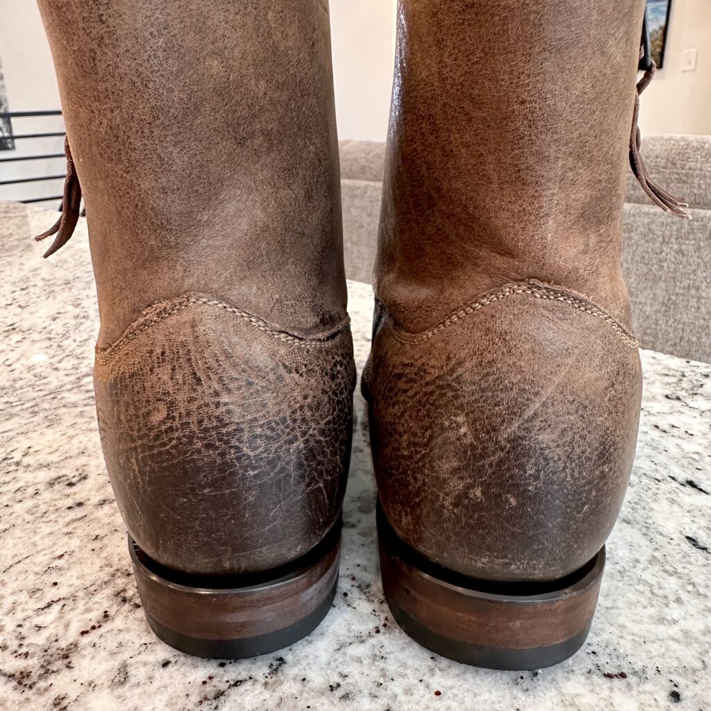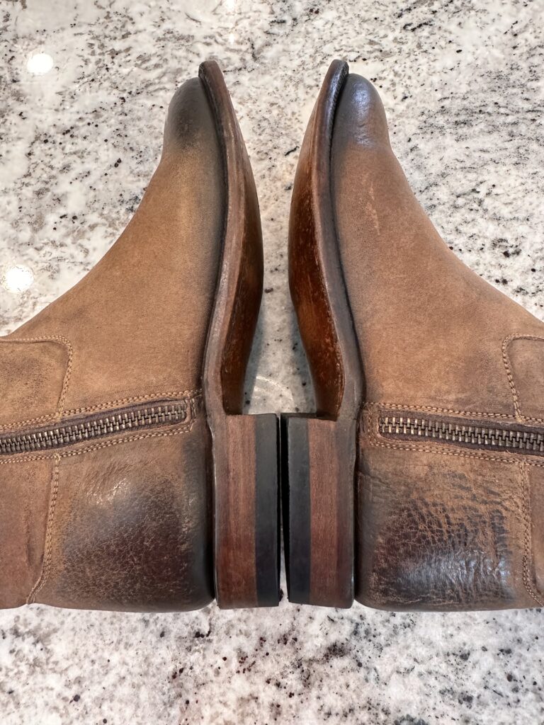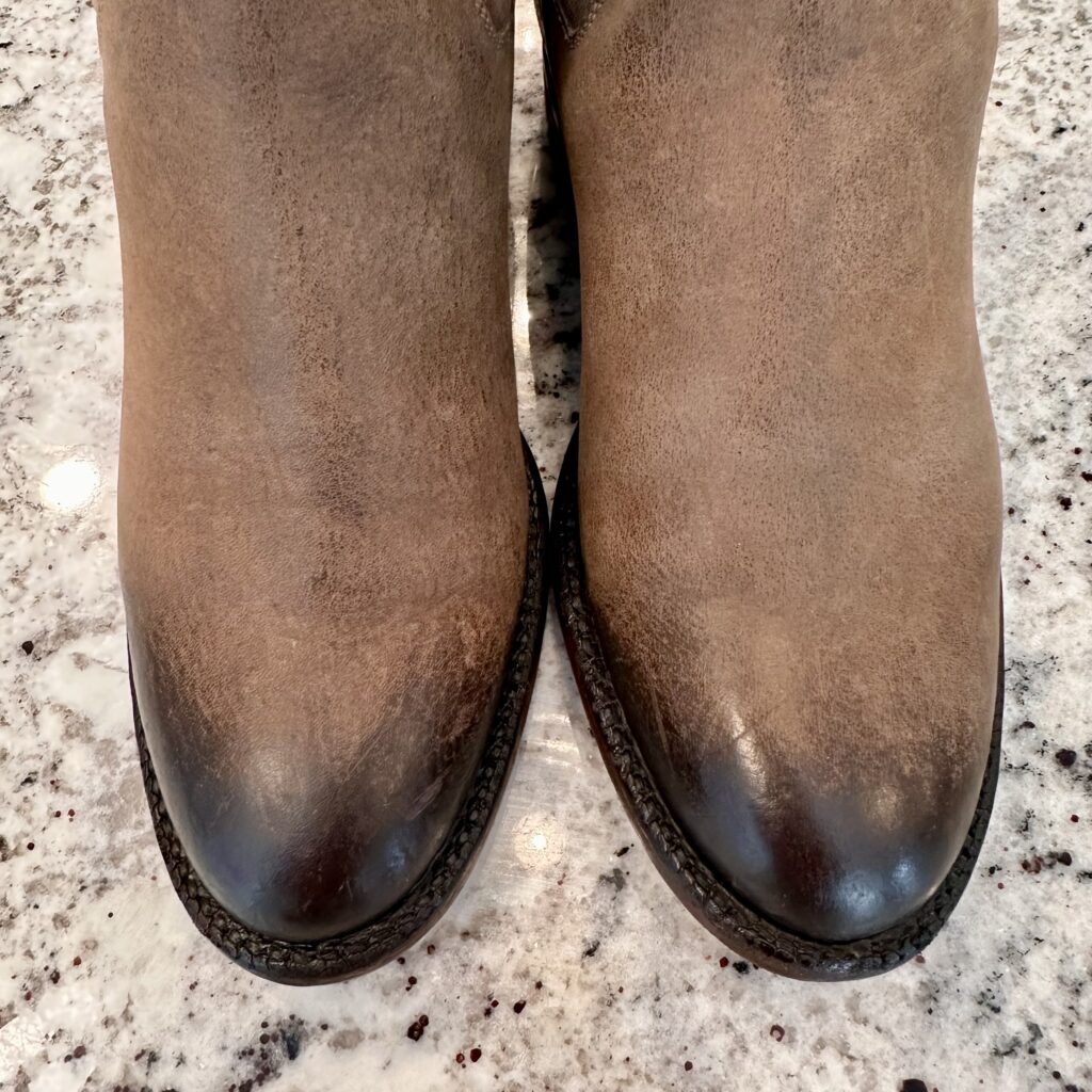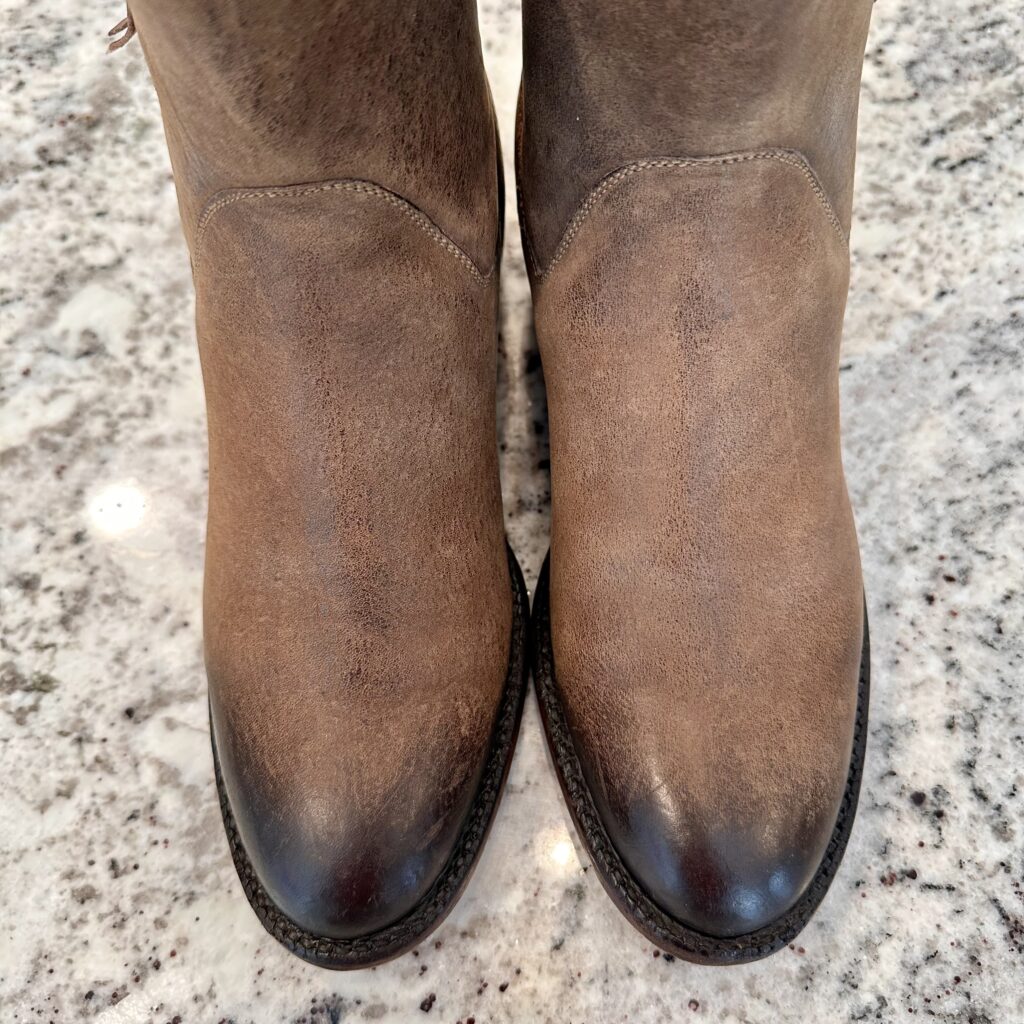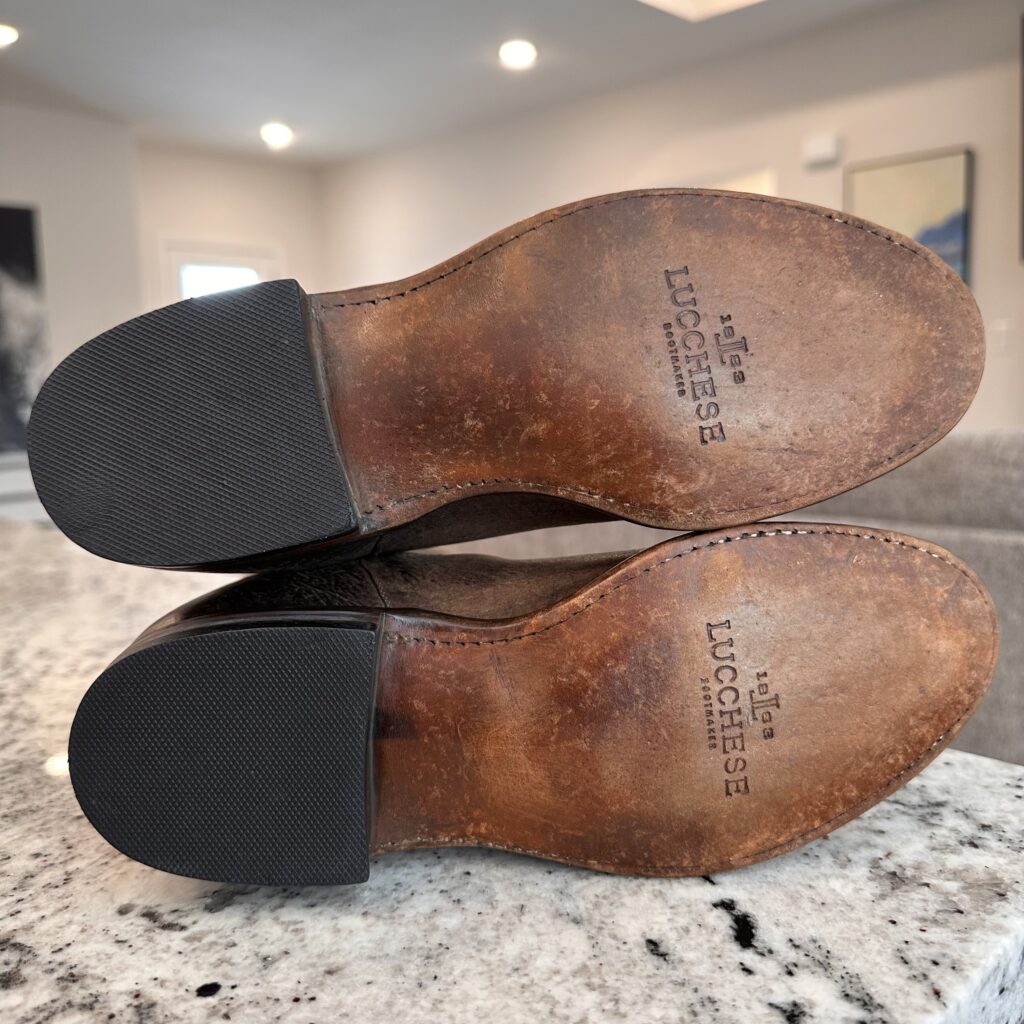 Type: These are women’s size 6.5 B Lucchese side zip leather ankle boots. These boots have caiman leather inserts – the zipper gussets are made of caiman leather. Side zip (outer side), leather outsoles. Lucchese Style GY6202. Made in USA.