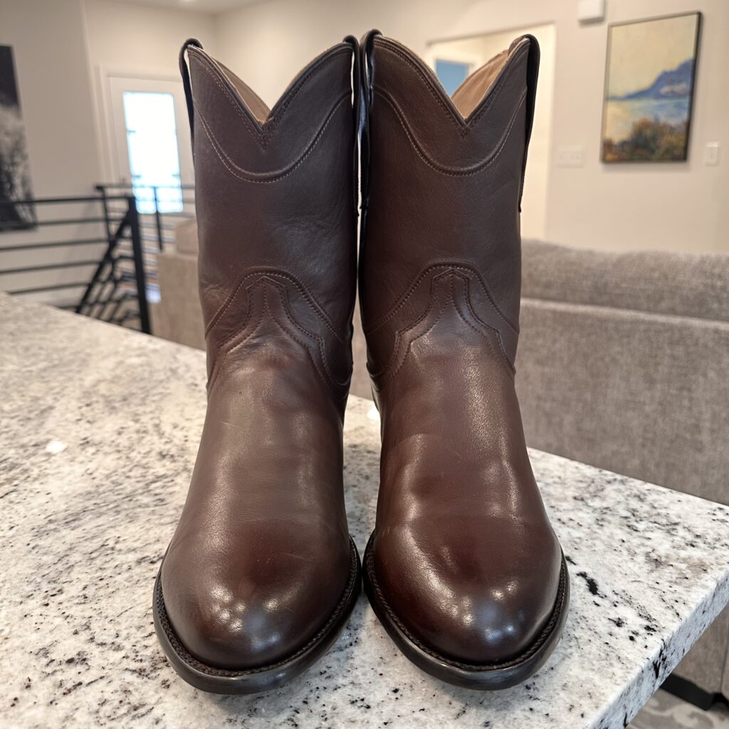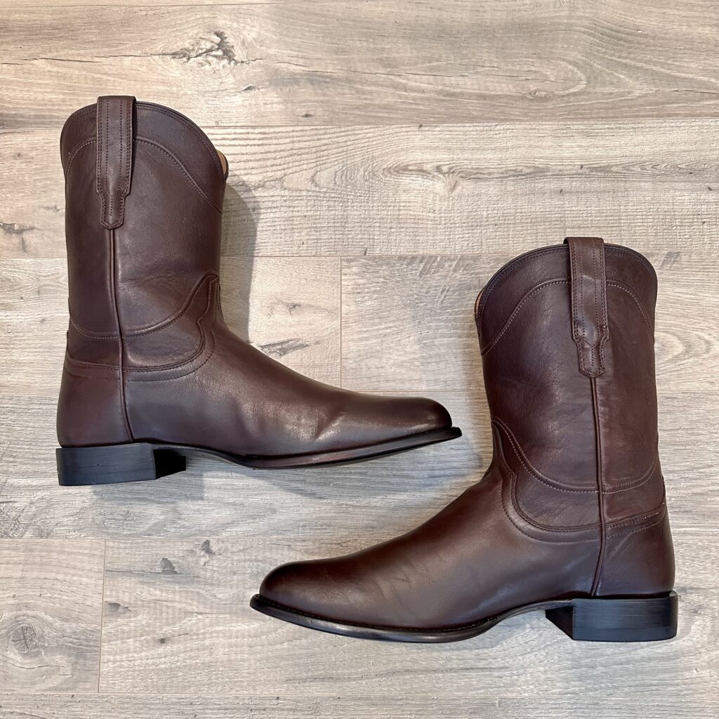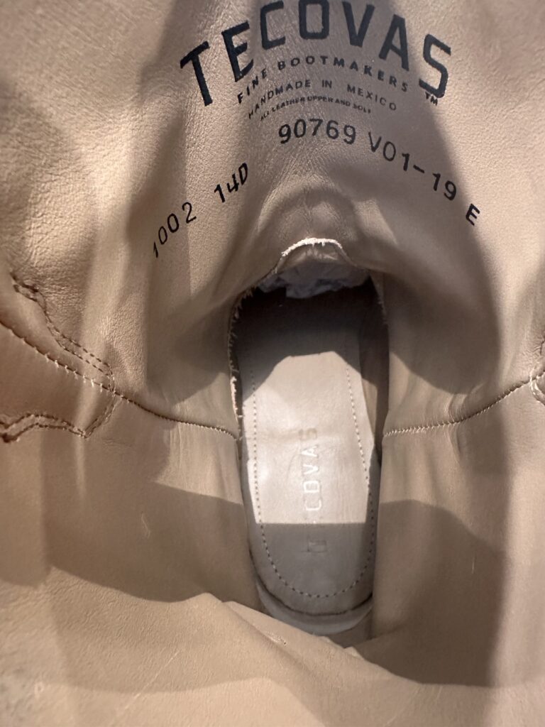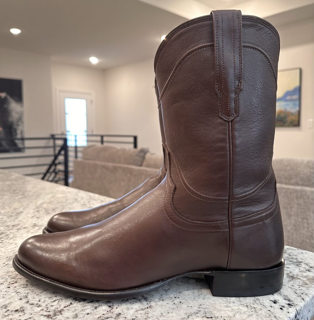 Type: These are men’s size 14 D Tecovas Earl Boots in dark brown. Tecovas Style 1002. These are in good pre-owned condition. The leather is in good condition. Outsoles and rubber heel caps show minor wear, but have plenty of good life left. Insoles and lining in good shape.
