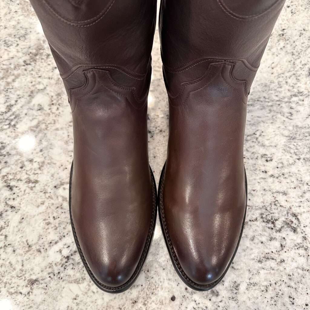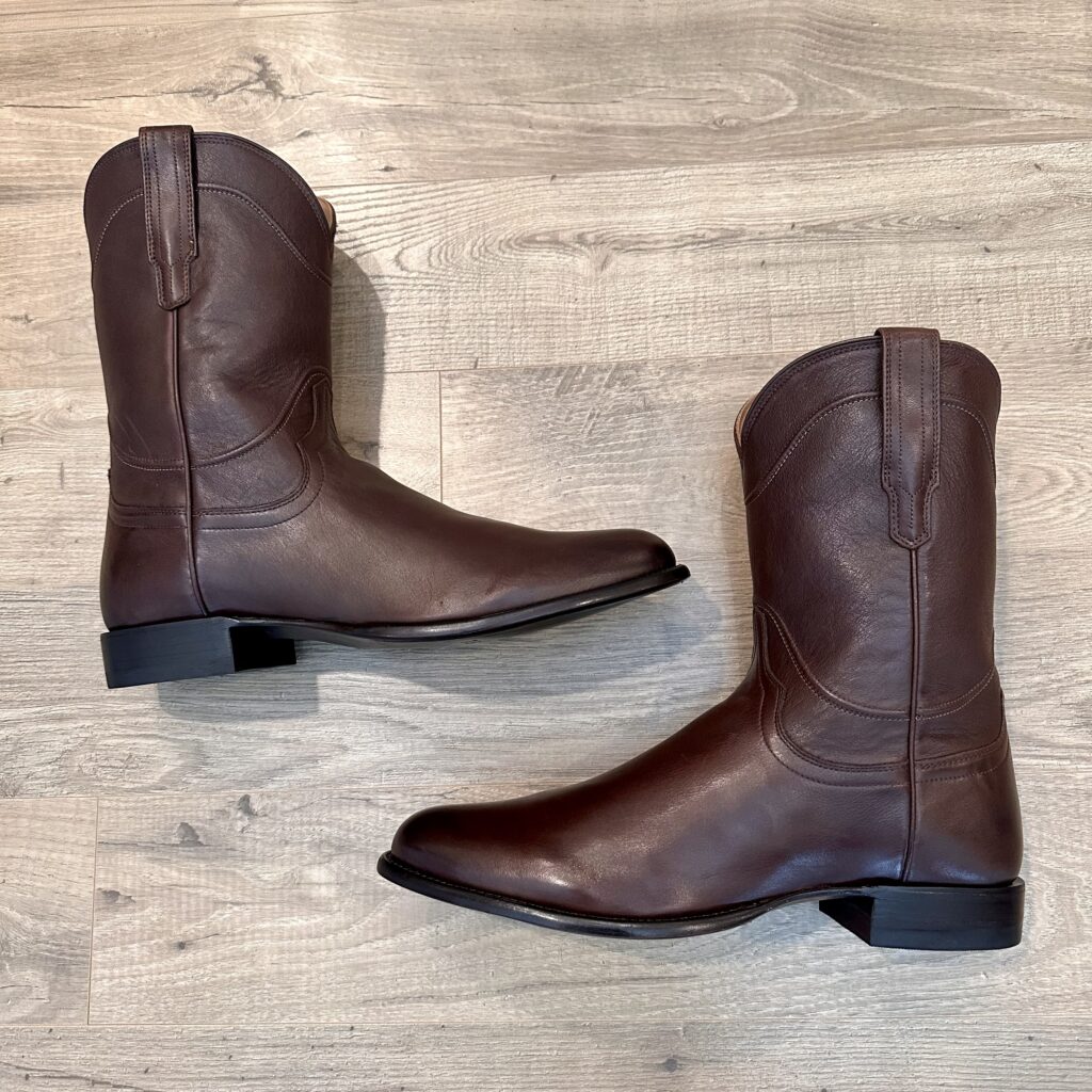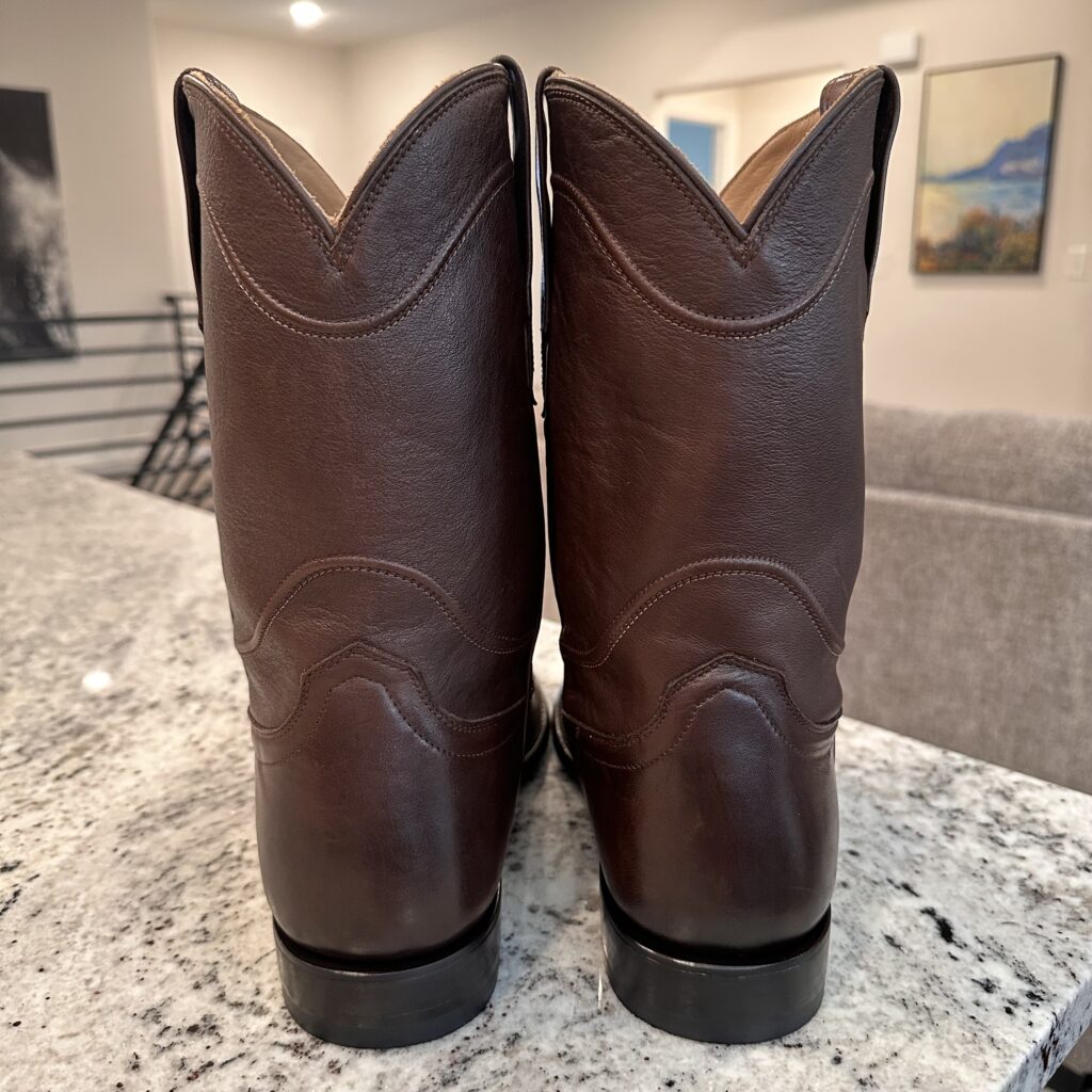 Type: These are men’s size 14 D Tecovas Earl Boots in dark brown. Tecovas Style 1002. These are in good pre-owned condition. The leather is in good condition. Outsoles and rubber heel caps show minor wear, but have plenty of good life left. Insoles and lining in good shape.