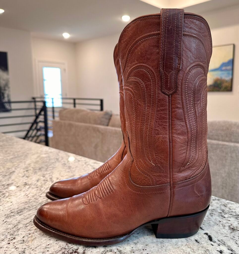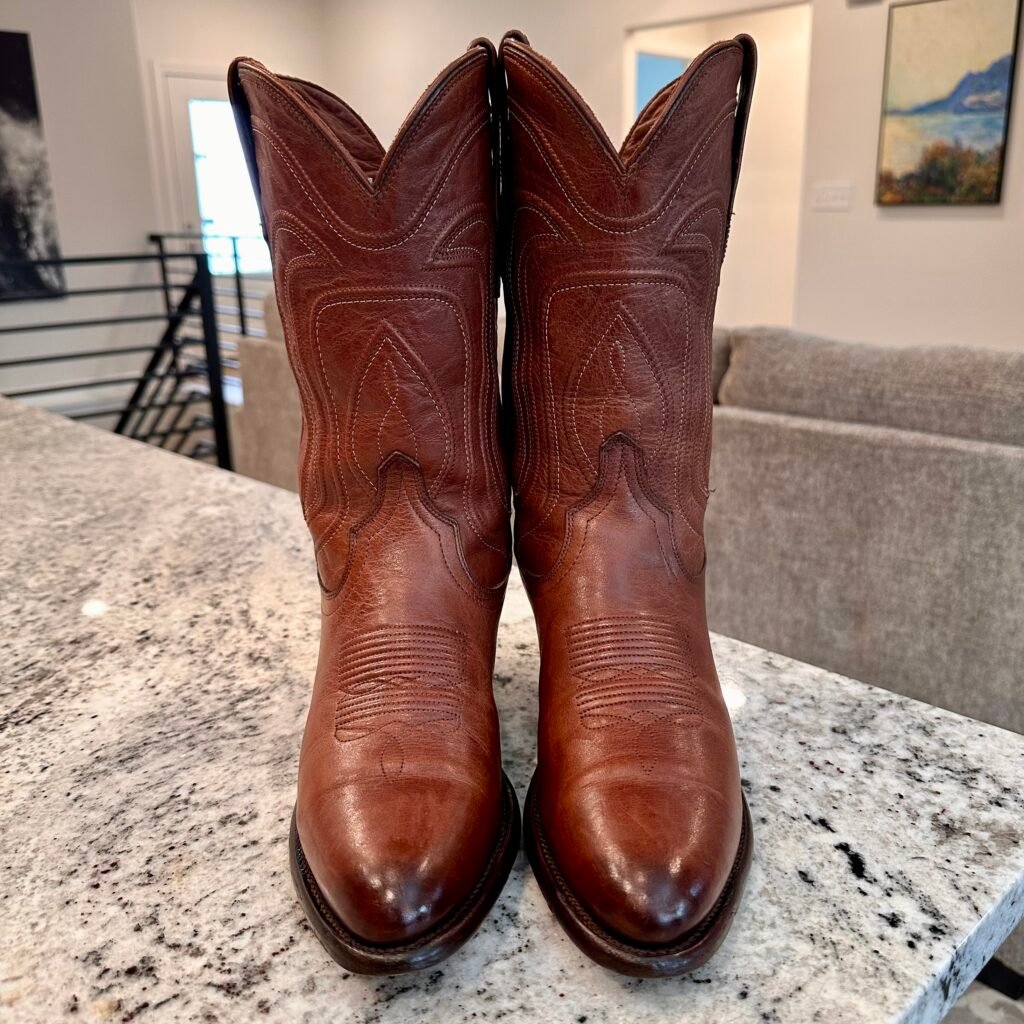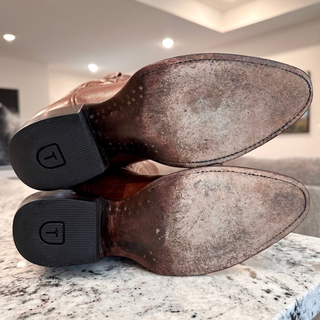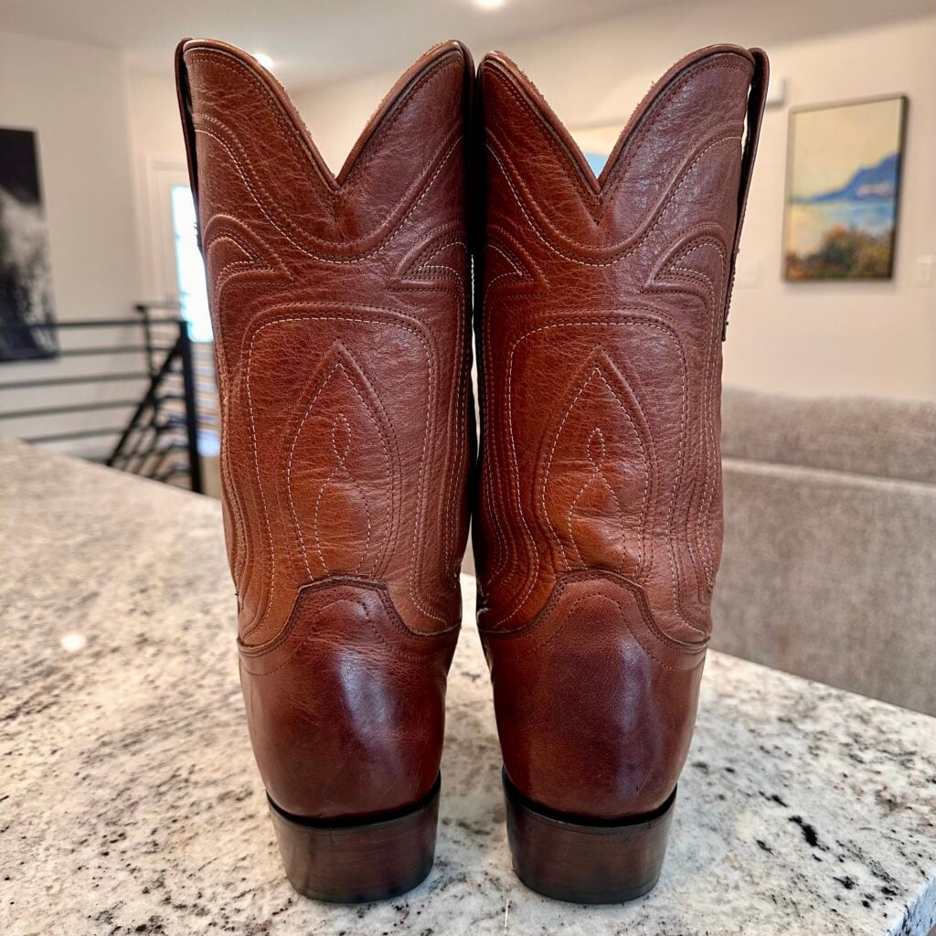 Type: These are women’s size 9.5 B Tecovas Jamie Boots in color brown. This is the original version of the Jamie that is no longer produced (The OG Jamie). These boots are in good pre-owned condition. The leather is in good shape. There is gentle scuffing near the toes and heels.